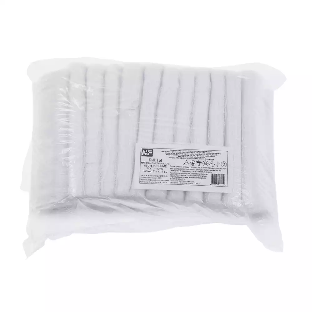 Бинт NF марлевый, размер 7м*14см, плотность 36г/м2, нестерильный, Ньюфарм (РОССИЯ), 25 шт