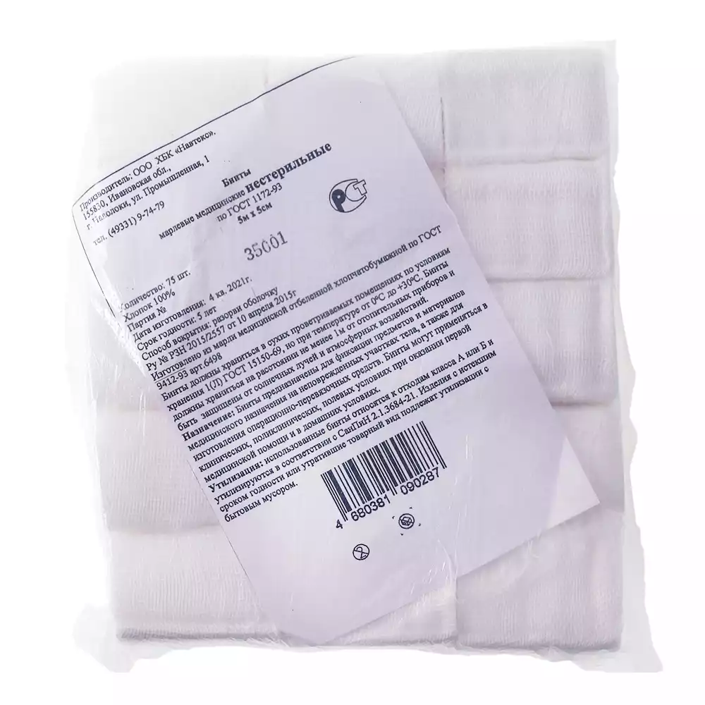 Бинт марлевый, размер 5*10см, плотность 28г/м2, нестерильный, инд.упаковка, Лейко (РОССИЯ)