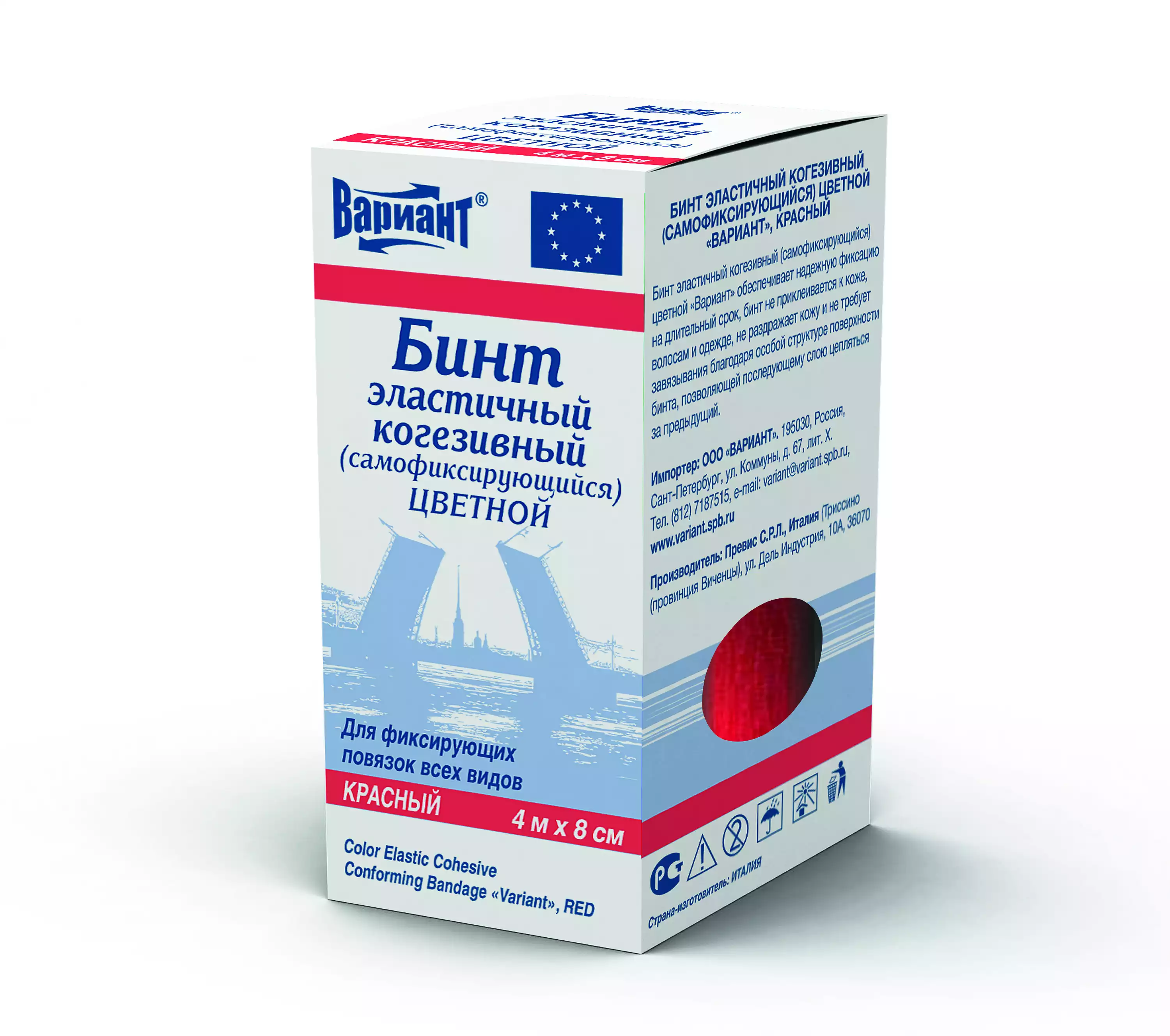 Бинт эластичный "Вариант" cамофиксирующийся когезивный, размер 4м*8см, цвет красный, Превис С.Р.Л. (Италия) (ИТАЛИЯ)