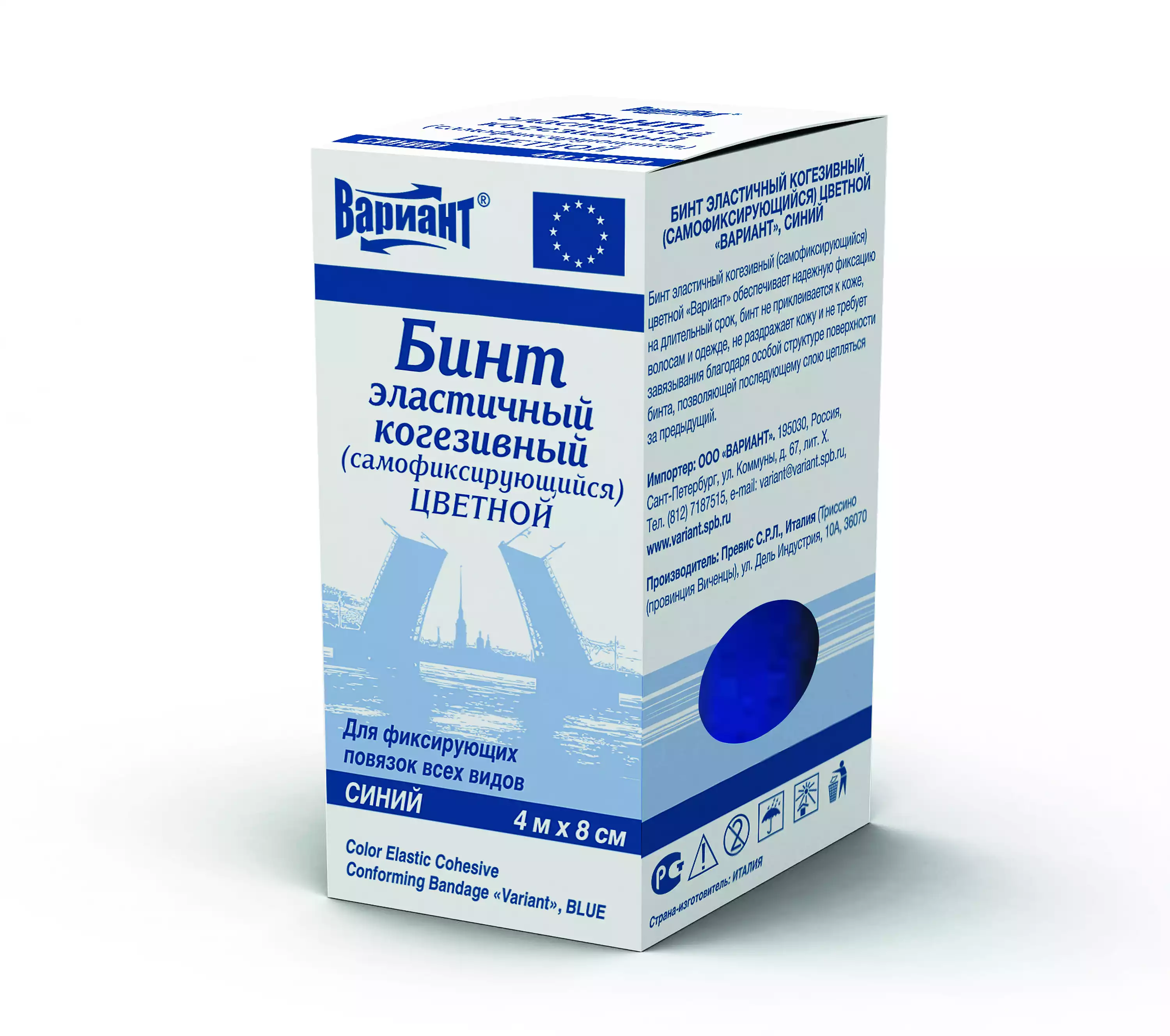 Бинт эластичный "Вариант" cамофиксирующийся когезивный, размер 4м*8см, цвет синий, Превис С.Р.Л. (Италия) (ИТАЛИЯ)