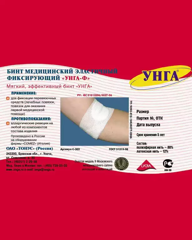 Бинт УНГА-ВР, эластичный высокой растяжимости, размер 1,5м*8см Lycra, Тонус АО
