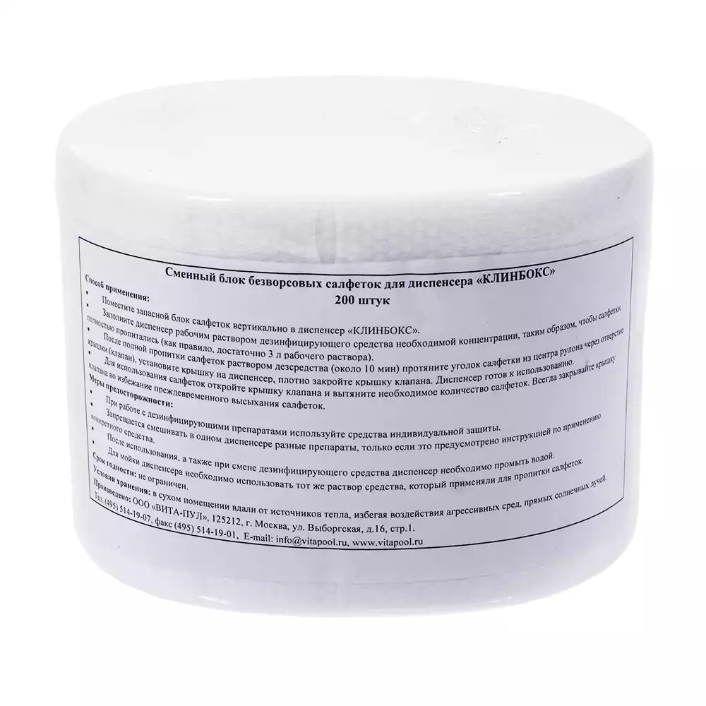 Салфетки КЛИНБОКС безворсовые, размер 14*30см №200 сменный блок для диспенсера (высота 14см), ВИТА-ПУЛ МК (РОССИЯ)