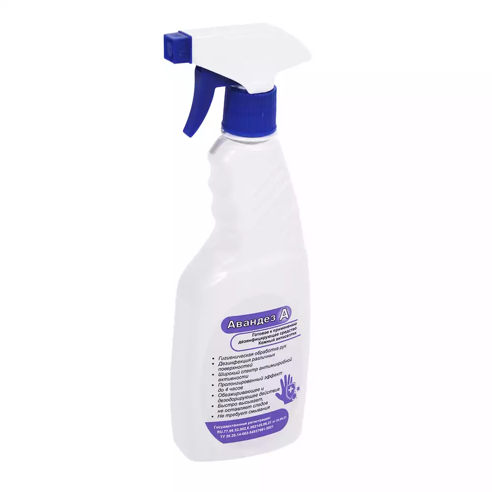 Авандез - А 0,5л, с триггером, кожный антисептик и дезинфектант для поверхностей (готовый раствор), изопропиловый спирт – 70%Дезос (РОССИЯ)