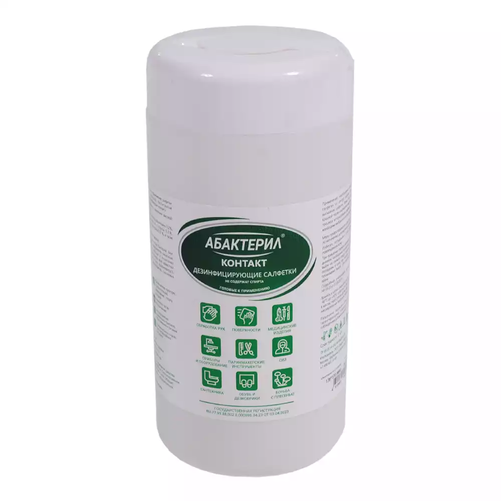 Салфетки "Абактерил - Контакт", безспиртовые дезинфицирующие, размер 13,6*17,0см, в банке № 60шт, готовые к применениюРудез (РОССИЯ)