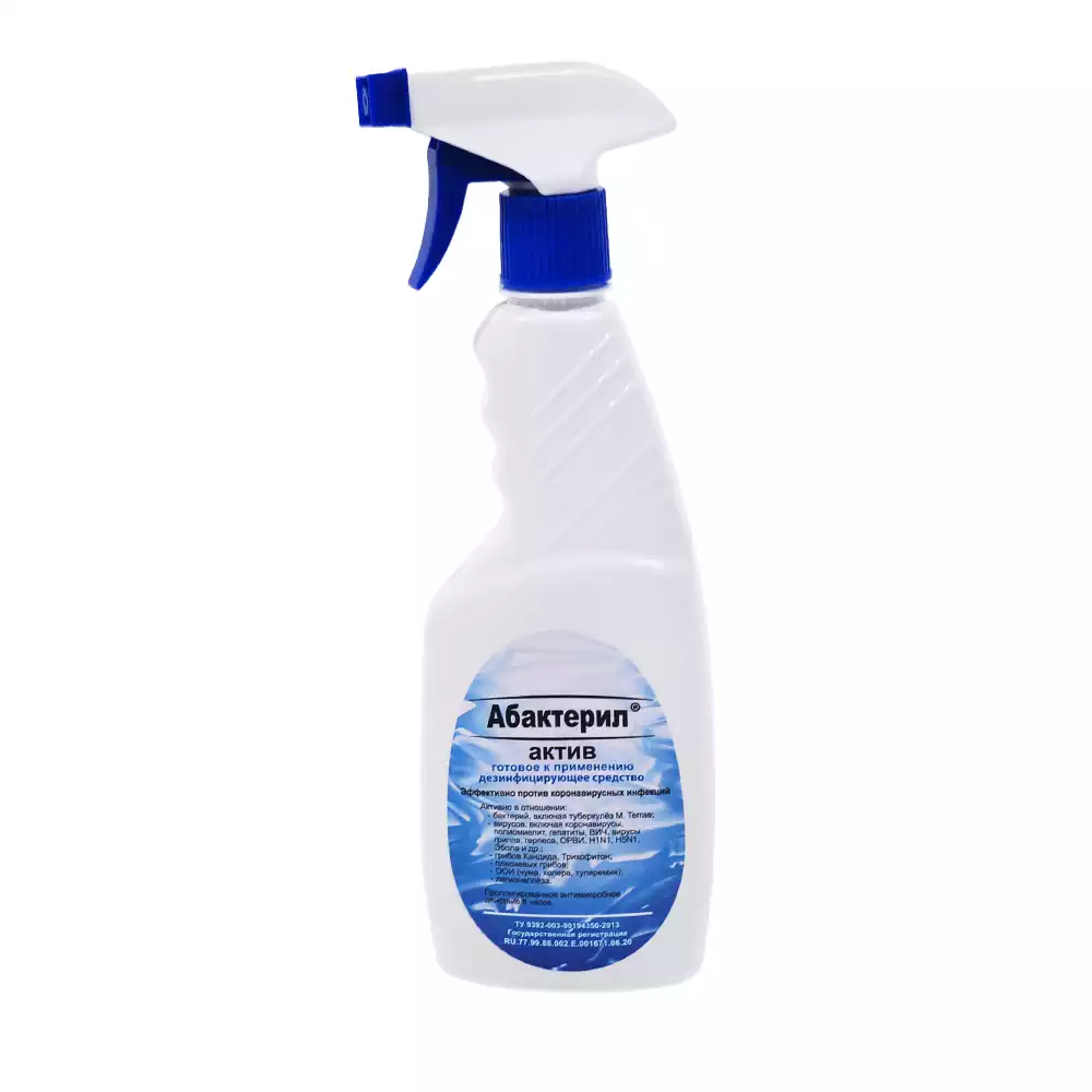 Абактерил - АКТИВ 0,5л, с триггером, кожный антисептик и дезинфектант для поверхностей (готовый раствор), изопропиловый спирт – 64,0%Рудез (РОССИЯ)