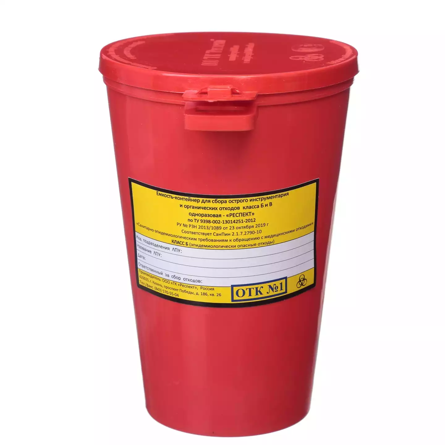 Емкость-контейнер для сбора острого инструментария (с иглосъемником), объем 1,0л (класс В), красная, одноразовая, Респект ГК (РОССИЯ)
