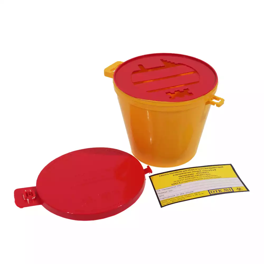 Емкость-контейнер для сбора острого инструментария (с иглосъемником), объем 6,0л (класс Б), желтая, одноразовая, МедКом НПФ (РОССИЯ)