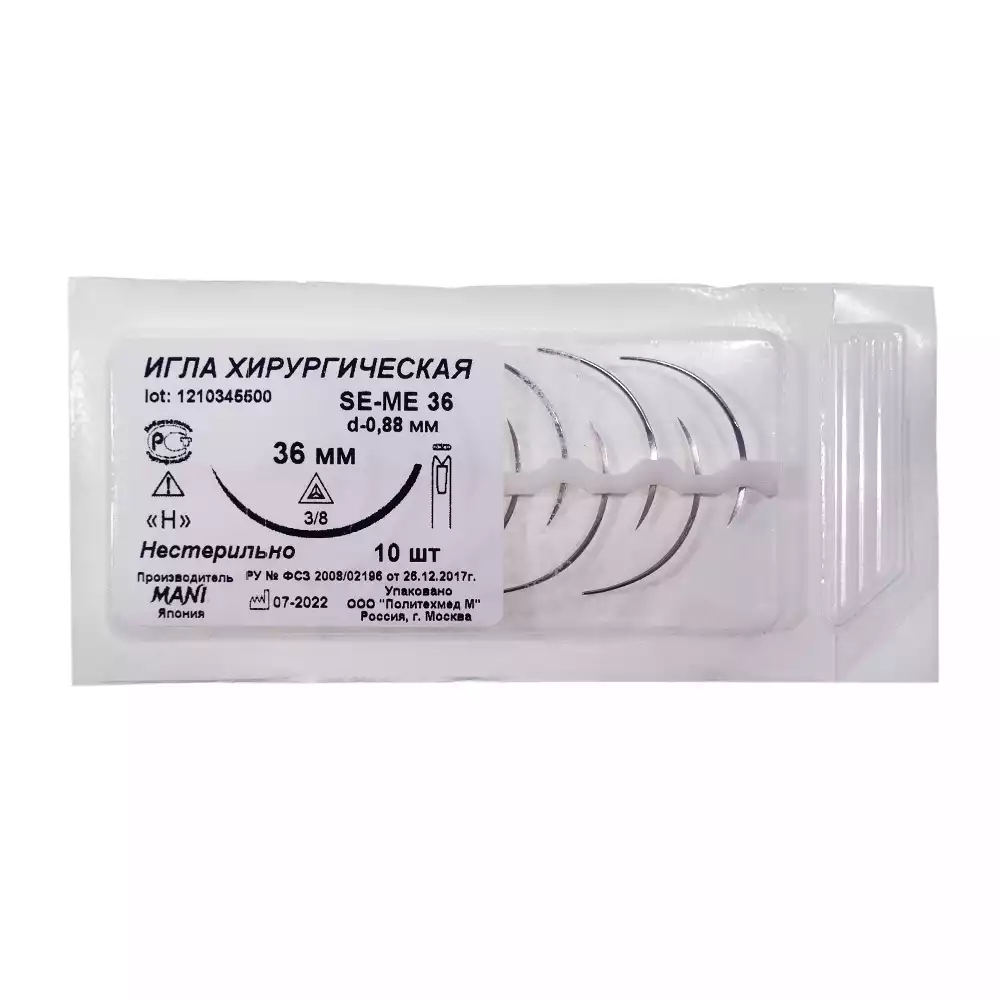 Игла хирургическая многоразовая режущая MANI SE-MЕ 36, 3/8 (0,88х36 мм)Mani, Inc. (ЯПОНИЯ), 10 шт