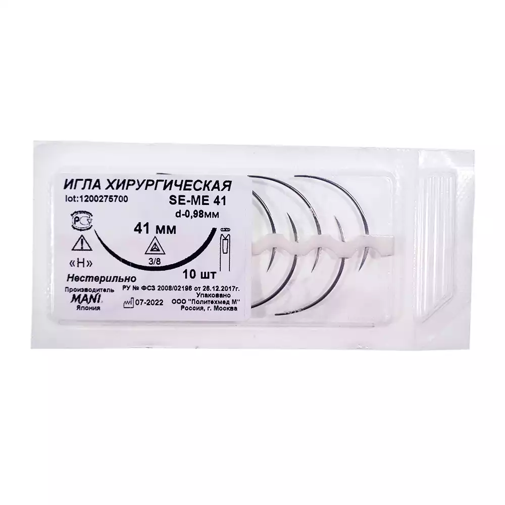 Игла хирургическая многоразовая режущая MANI SE-MЕ 41, 3/8 (0,98*41мм)Mani, Inc. (ЯПОНИЯ), 10 шт