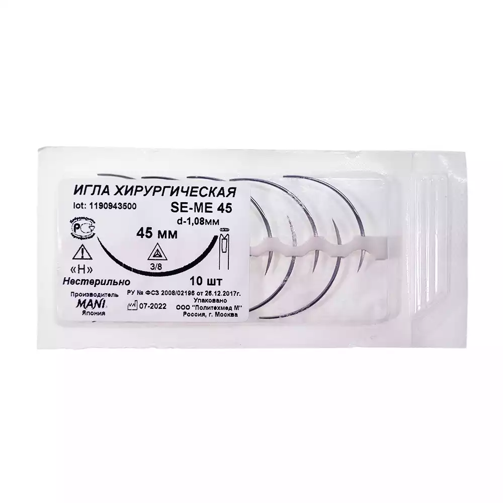 Игла хирургическая многоразовая режущая MANI SE-MЕ 45, 3/8 (1,08*45мм)Mani, Inc. (ЯПОНИЯ), 10 шт