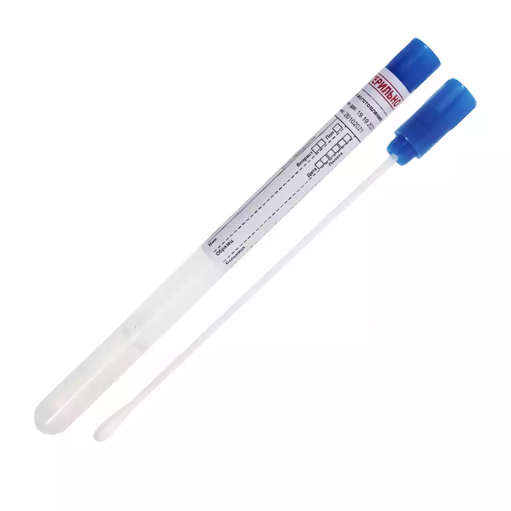 Зонд-тампон (сваб), пластик-вискоза, с транспортной средой Эймса, без угля, стерильный, МиниМед (РОССИЯ)
