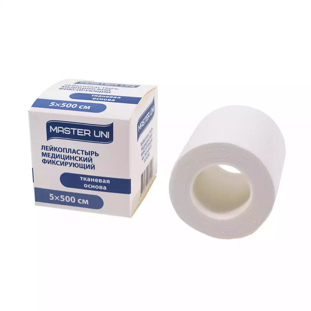 Лейкопластырь Master Uni на тканевой основе,фиксирующий, размер 5см*500см, катушка в картонной коробке, ООО "ХЕЛСЛАБ" (РОССИЯ)