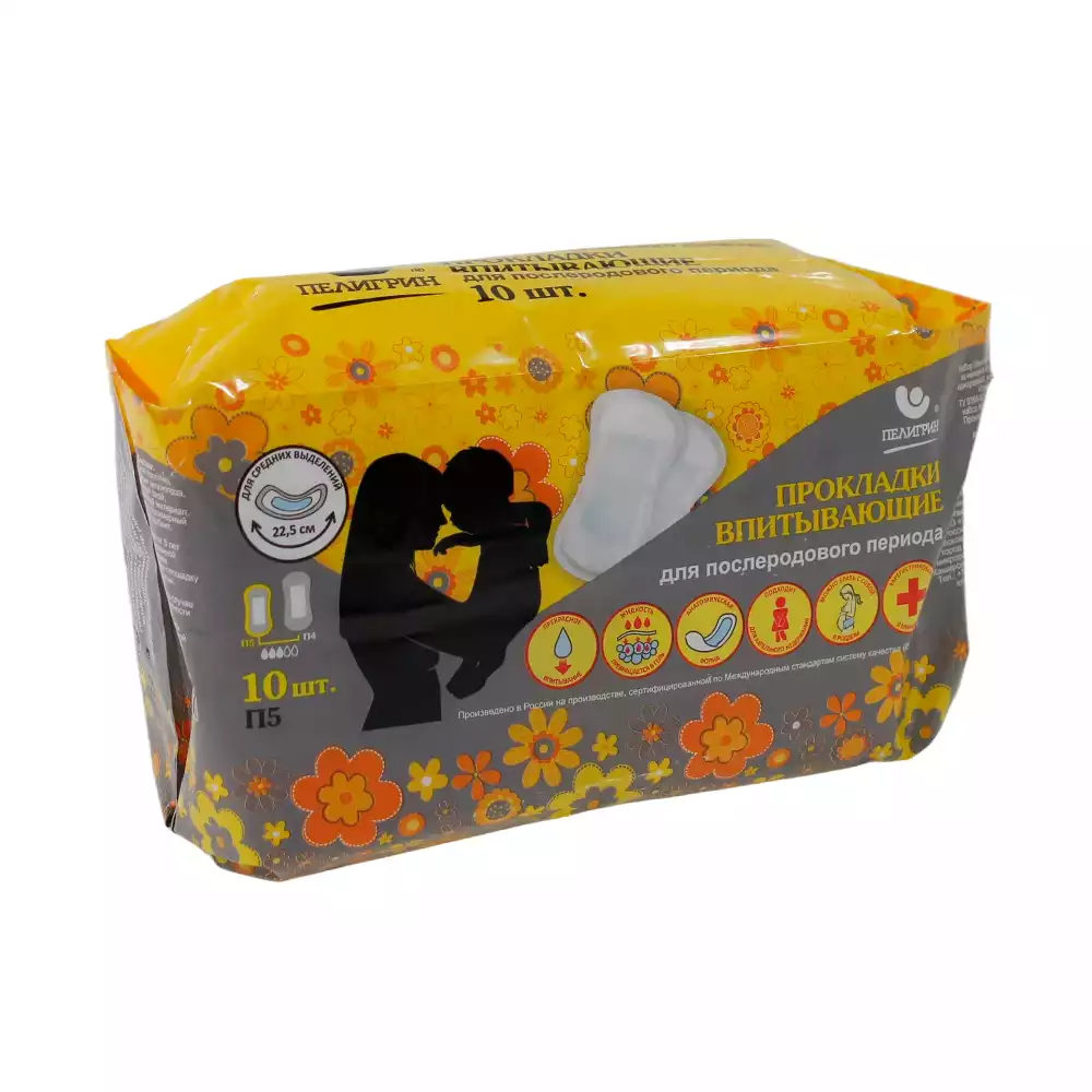 Прокладки женские впитывающие Пелигрин normal (послеродовые), упаковка 10 шт, впитываемость 270мл, Пелигрин Матен