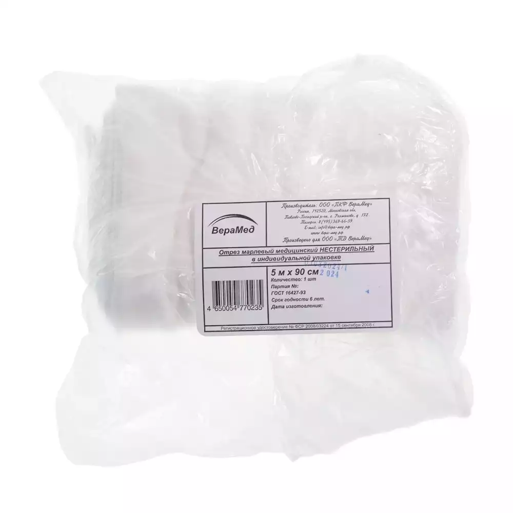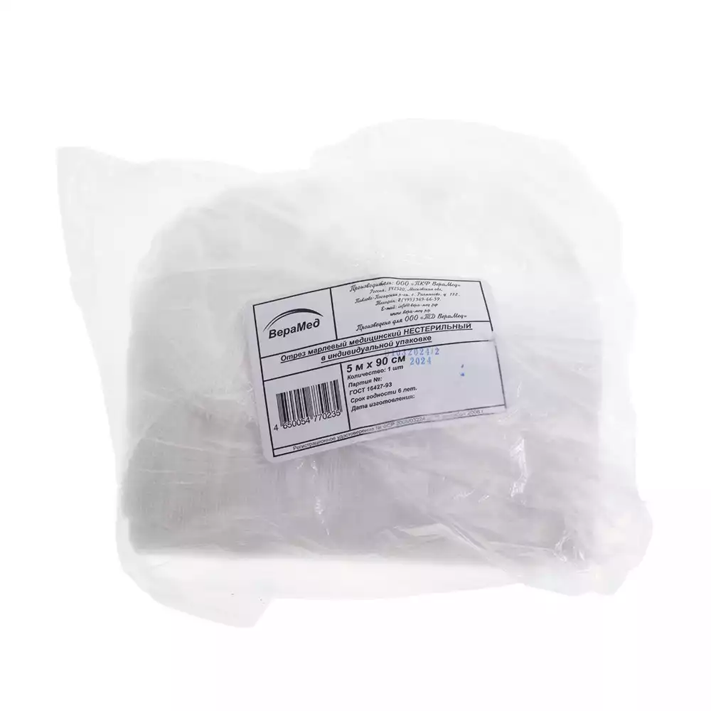 Марля медицинская, ширина 90см, отрез 5м, плотность 32г/м2, Верамед (РОССИЯ)