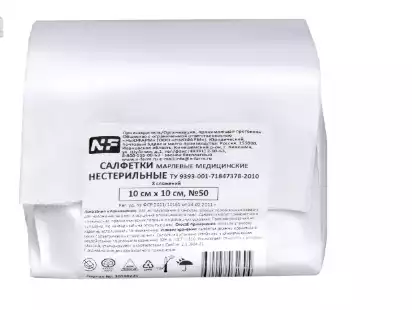 Салфетки марлевые нестерильные 10см*10см №50, 8 сложений 32г, NF, Ньюфарм (РОССИЯ)