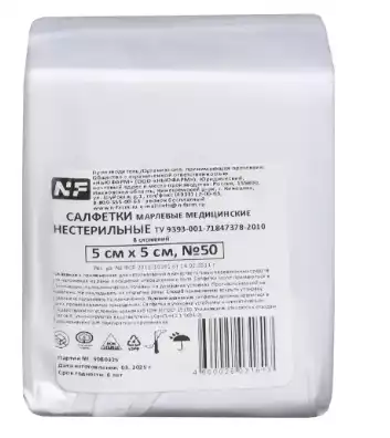 Салфетки марлевые медицинские нестерильные 5см*5см №50, 8 сложений 32г NF, Ньюфарм (РОССИЯ)