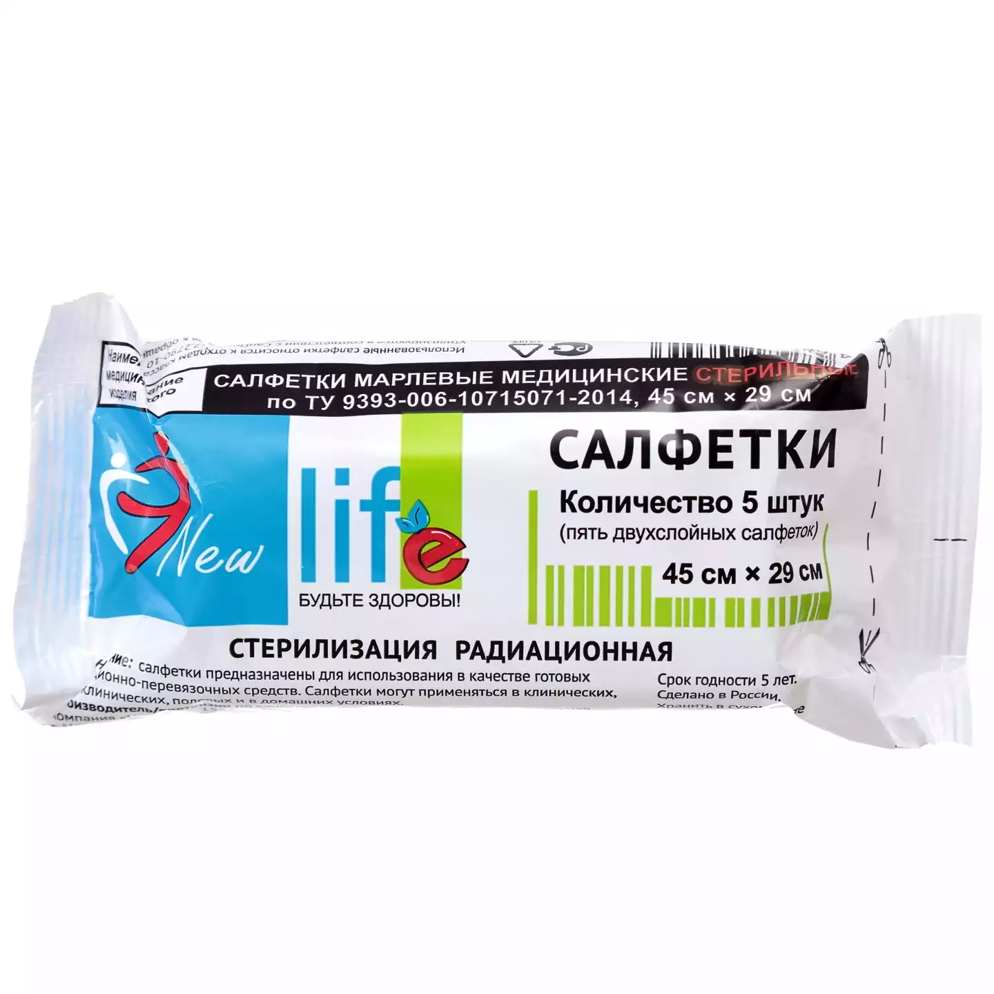 Салфетка марлевая №5, 2-х слойная размер 45*29см Лайф, плотность 32г/м2, стерильная, Навтекс ХБК (РОССИЯ)
