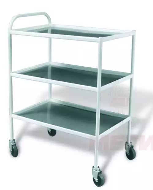 Столик МСК-502М процедурный передвижной металл. с тремя полками (нержавеющая сталь). колеса мебельные, размер 640х420х860мм, Медстальконструкция (РОССИЯ)