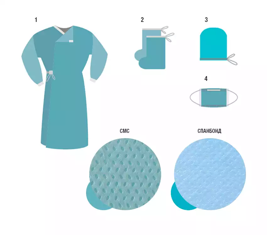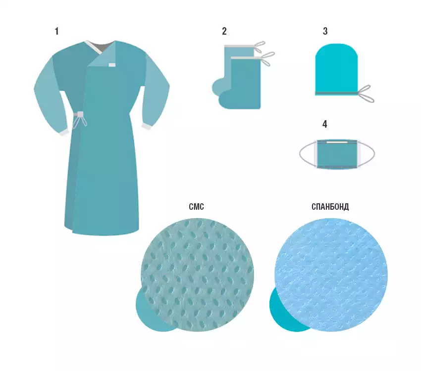 Комплект одежды хирургический КОХ-01 смс 42г/м2, стерильный, Инмедиз (РОССИЯ)
