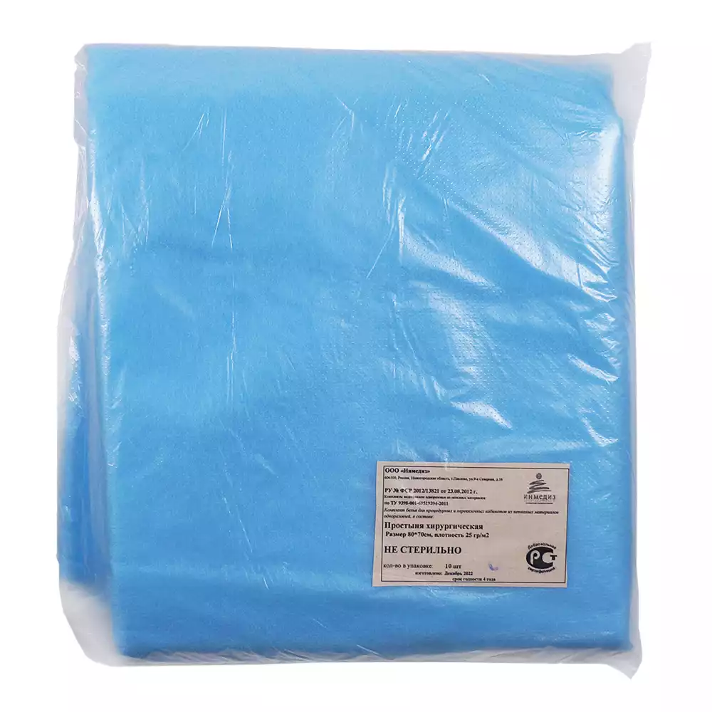 Простыня 70*80см, материал СМС 25г/м2, нестерильная, голубая, Инмедиз (РОССИЯ), 10 шт
