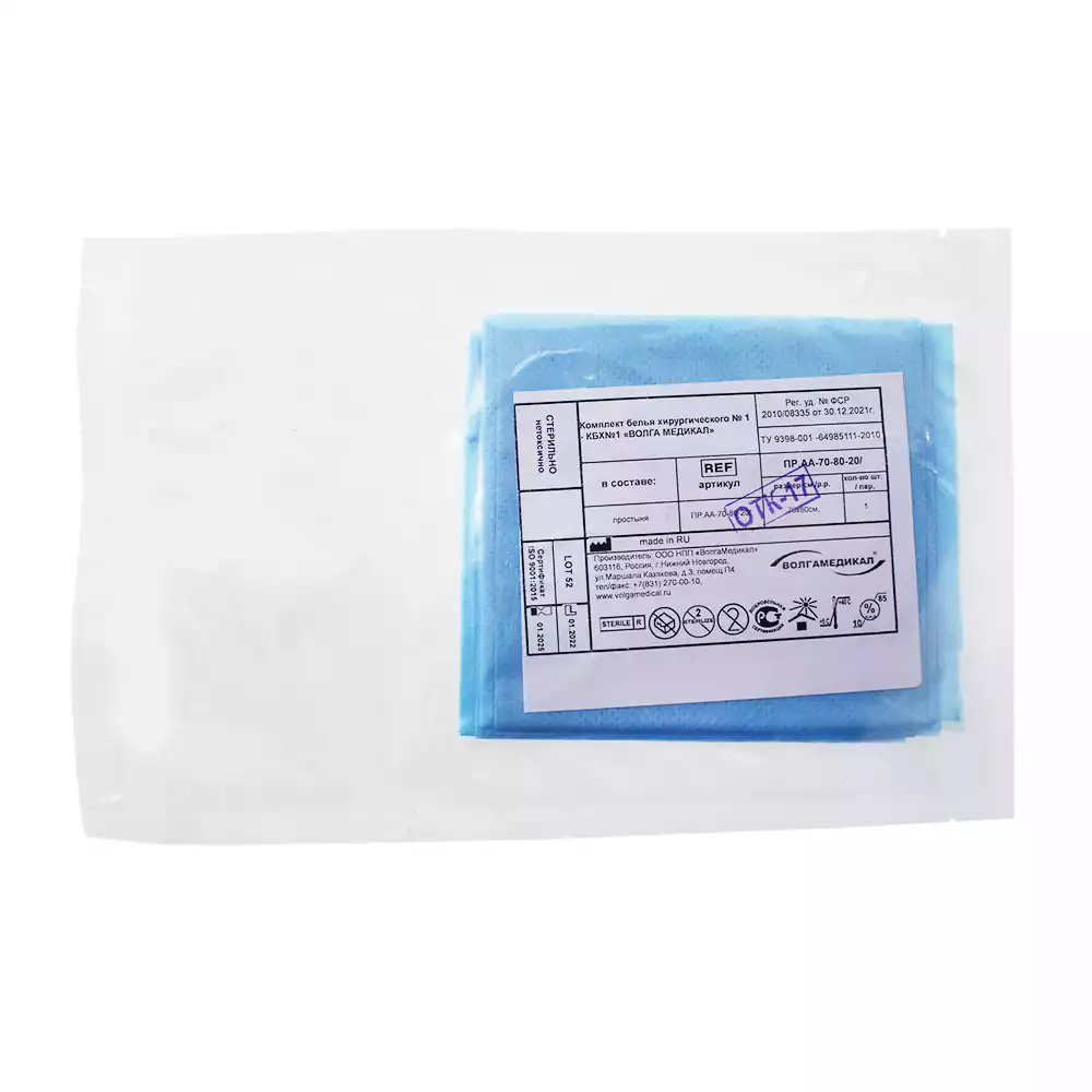 Простыня 70*80см, материал Спанбонд 20г/м2, стерильная, цвет голубой, с РУ, Волга Медикал НПП (РОССИЯ)