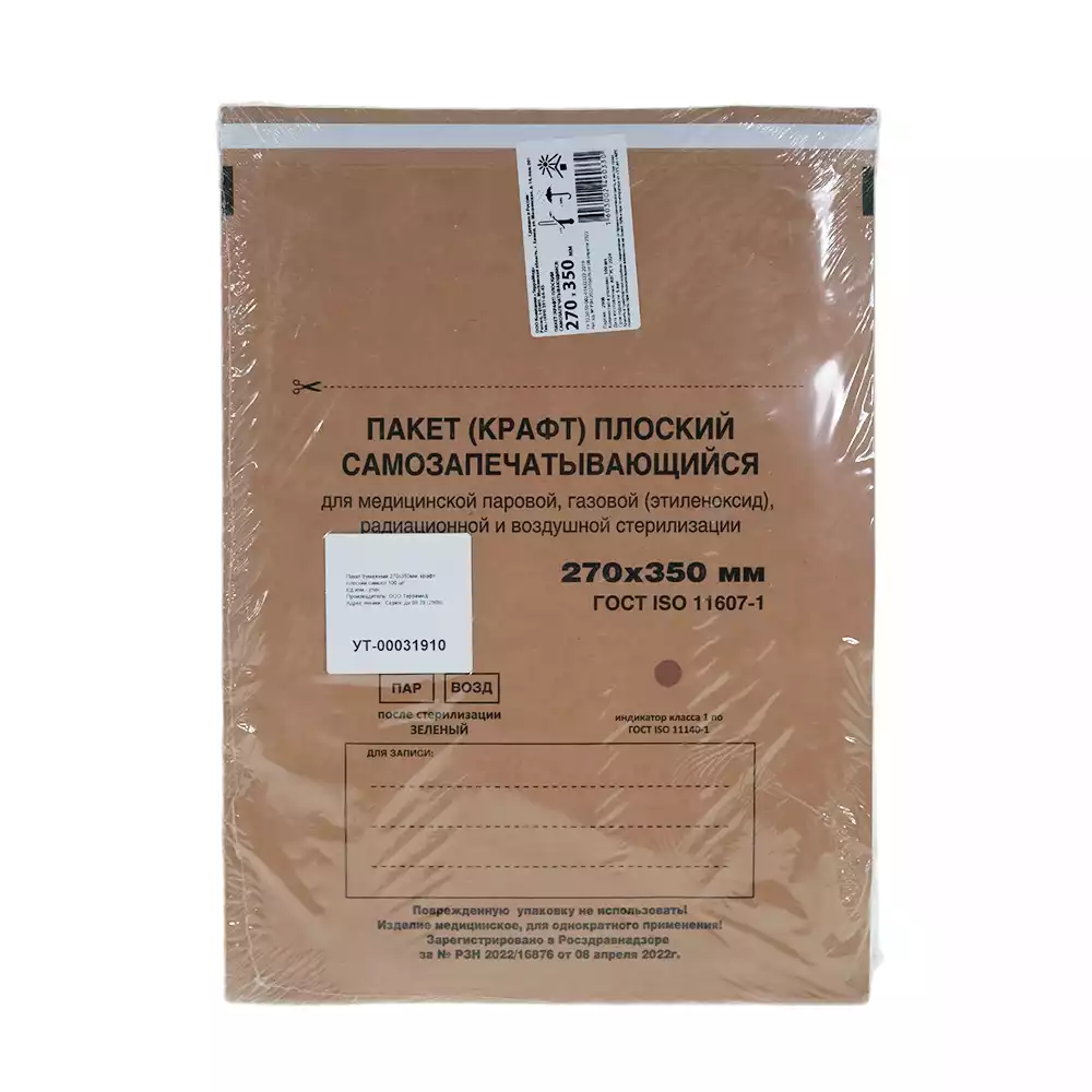 Пакет ТерраМед, размер 270*350мм, бумажный, крафт, самоклеющийся, упаковка 100штООО Террамед (РОССИЯ)
