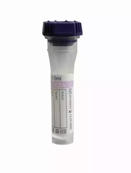 Пробирка вакуумная пластиковая для гематологических исследований VacPlus с ЭДТА-К2, объем 2 мл, размер 13*75 мм цвет крышки фиолетовый, Hebei Xinle Sci&Tech Co Ltd (КИТАЙ)
