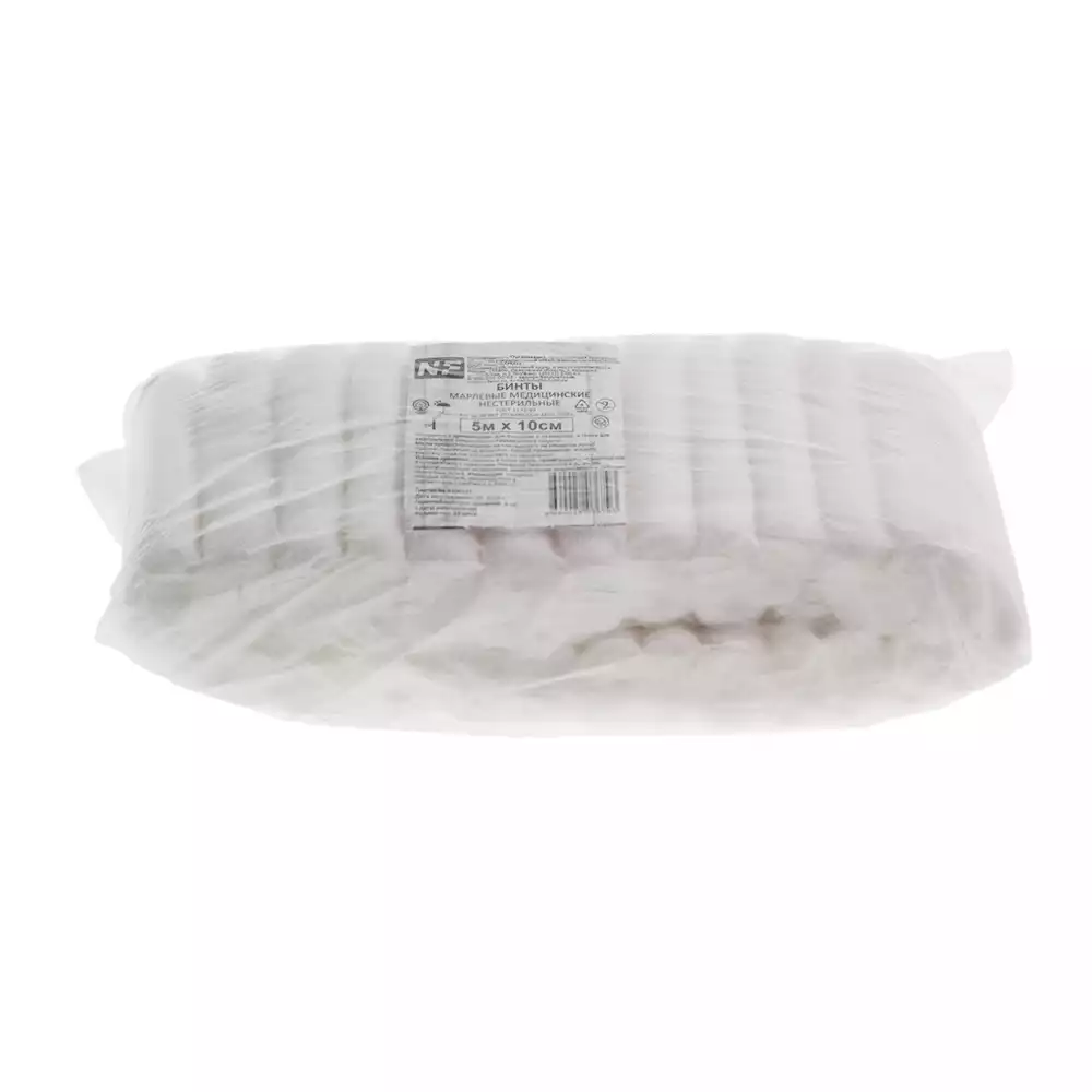 Бинт NF марлевый, размер 5м*10см, плотность 36г/м2, нестерильныйНьюфарм (РОССИЯ), 25 шт