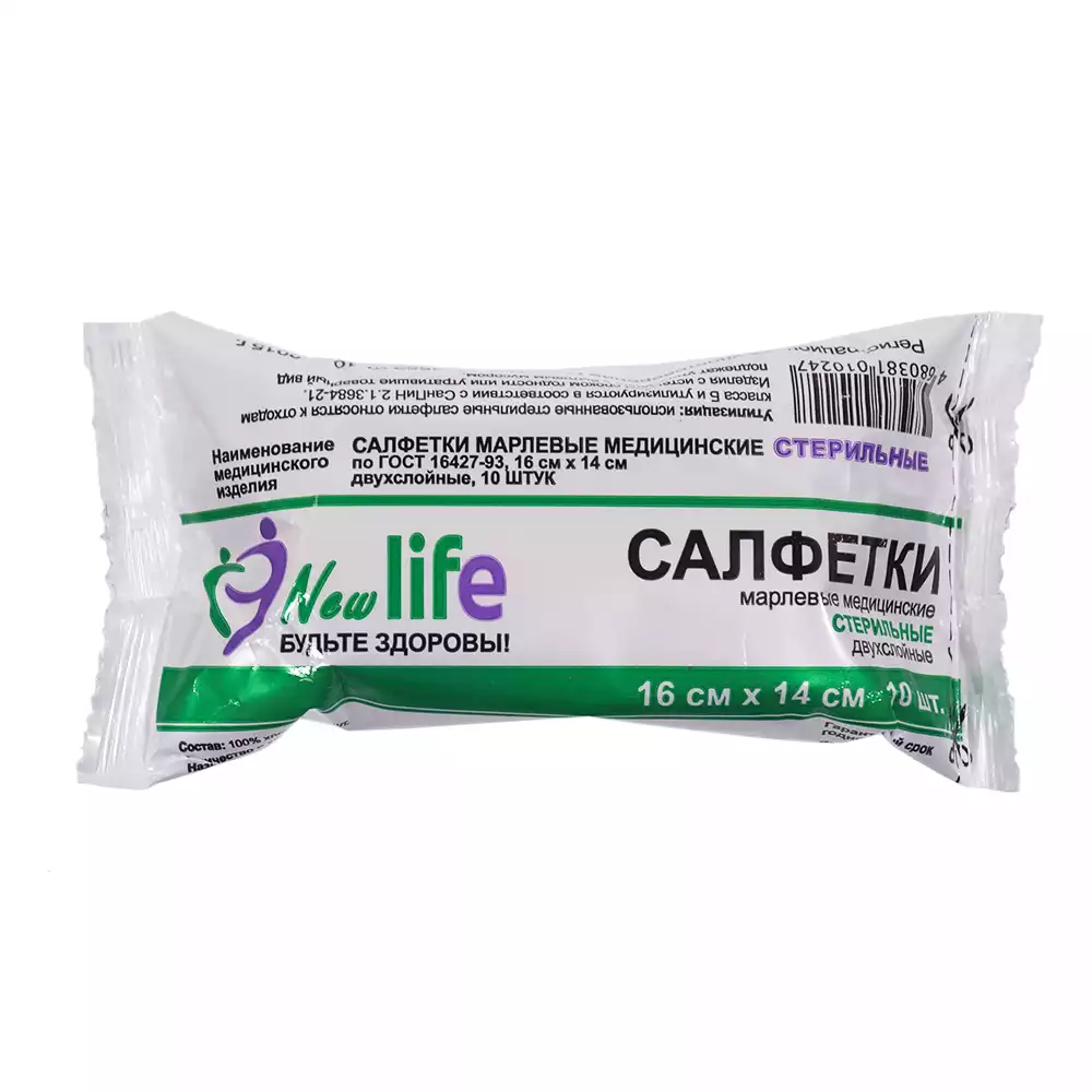 Салфетка марлевая №10, 2-х слойная, размер 16*14см Лайф, плотность 36г/м2, стерильнаяНавтекс ХБК (РОССИЯ)