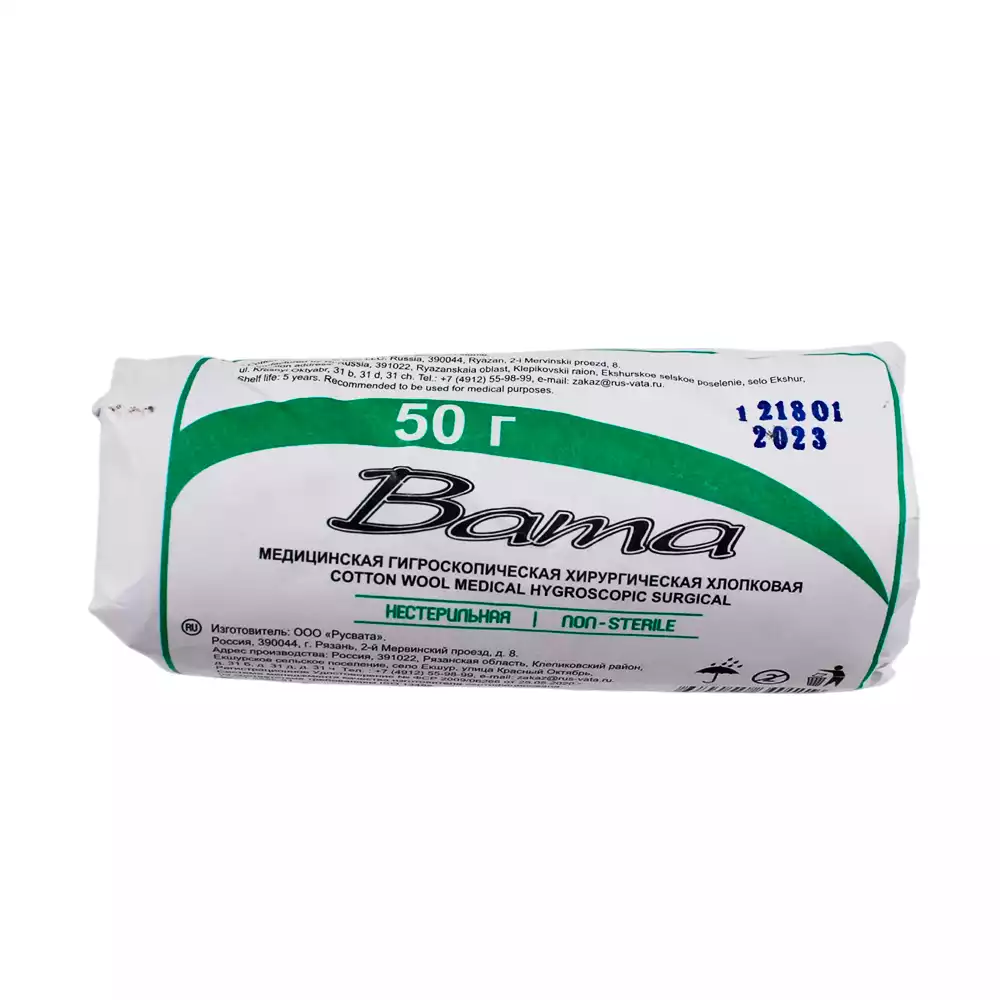 Вата медицинская хирургическая нестерильная 50гЕмельянъ Савостинъ ВФ (РОССИЯ)