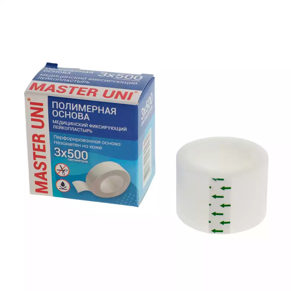 Лейкопластырь Master Uni на полимерной основе, фиксирующий, размер 3см*500см, катушка в картонной коробкеООО "ХЕЛСЛАБ" (РОССИЯ)