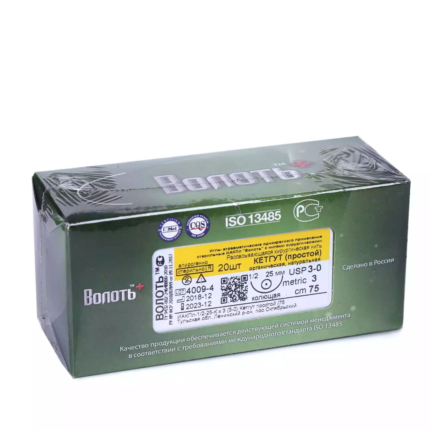 Кетгут простой USP №3/0, длина нити 75см, игла колющая, изгиб 1/2 окружности, длина 25мм, одноигольная,стерильныйВолоть (РОССИЯ), 20 шт