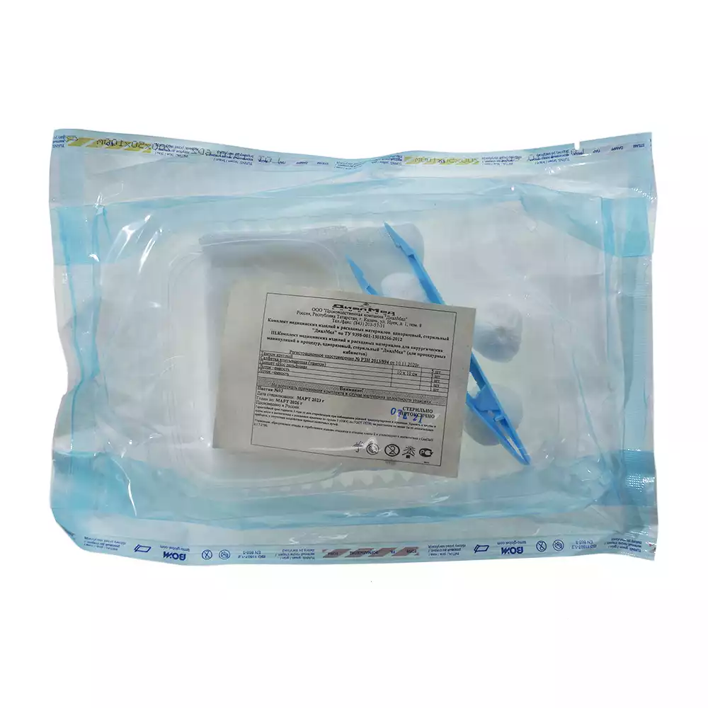 Комплект "ДиалМед" для процедурных кабинетов (10 салфеток, тампоны, лотки, пинцет), одноразовый, стерильныйДиалМед МК (РОССИЯ)