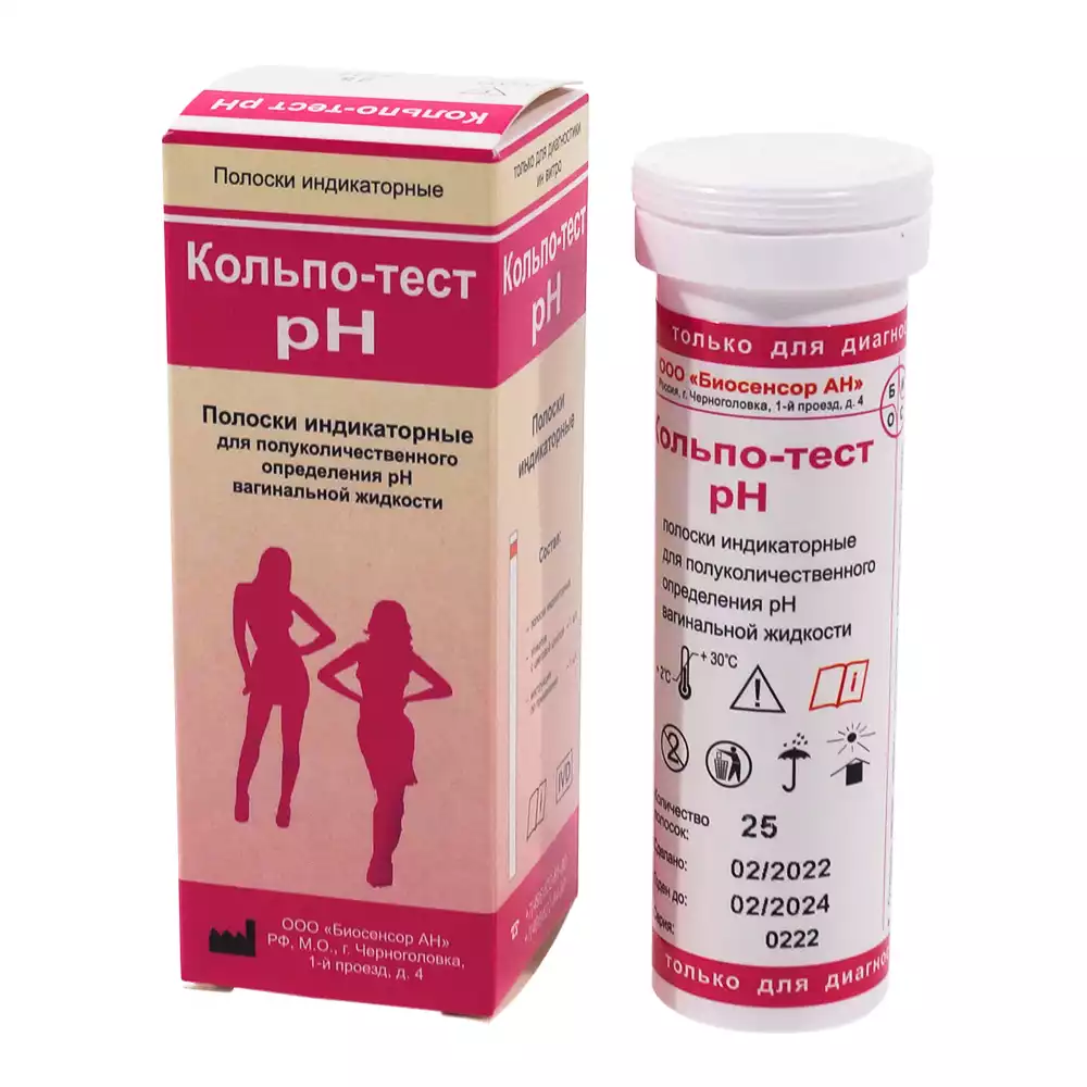 Тест- полоски индикаторные "Кольпо-тест PH", для полуколичественного определения PH вагинальной жидкости, №25 пеналБиосенсор АН (РОССИЯ)