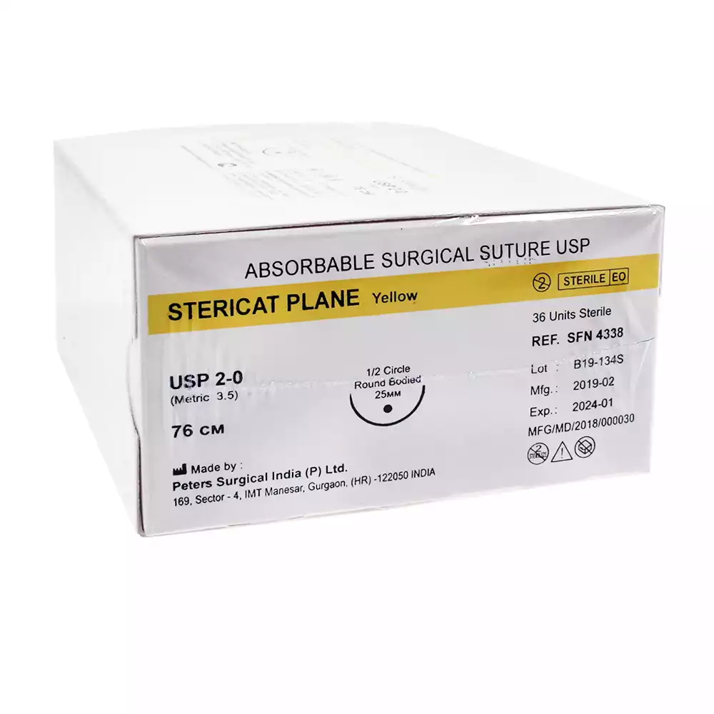 Стерикат 2/0 (3,5), длина нити 76см, игла 1/2 круглая колющая 25мм, упаковка 36шт, SFN4338Peters Surgical (ИНДИЯ)
