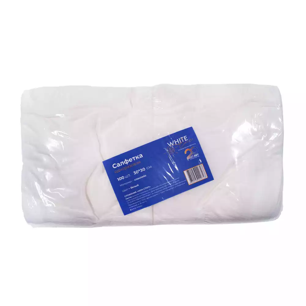 Салфетка 30х30см, материал спанлейс 40г/м2,белая, нестерильная, белая, Белая линия (РОССИЯ)