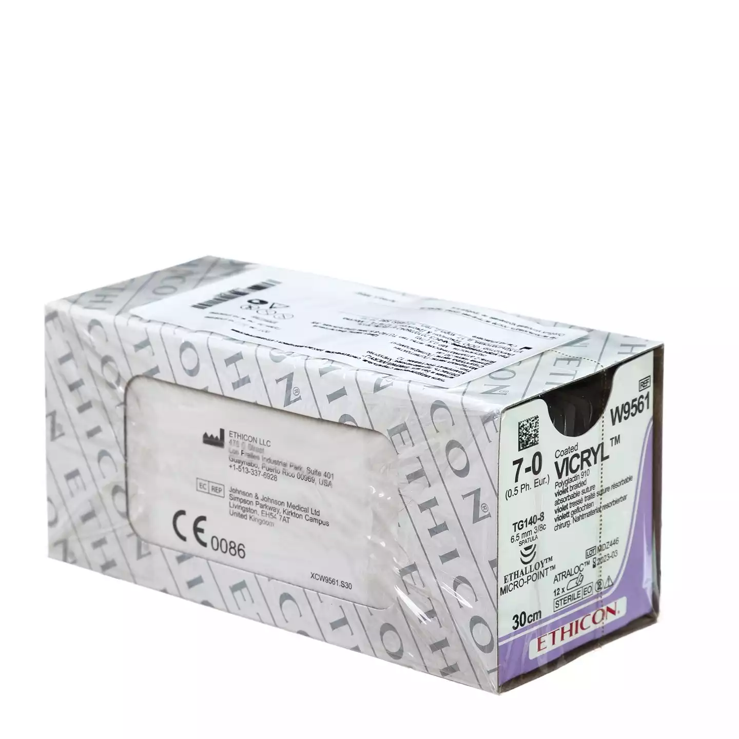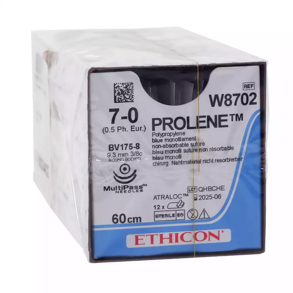 Пролен М0.7 (6/0), длина 60см, 2 иглы колющие BV-1 3/8, окружности 9,3мм, синий, упаковка 12шт, W8712, ETHICON