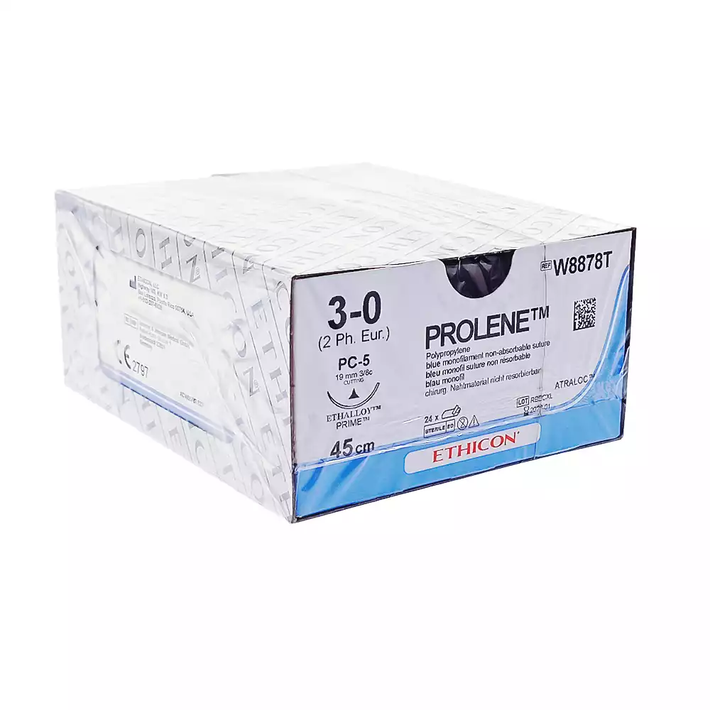 Пролен 3/0, длина 45см, игла режущая 19мм, синий, упаковка 24шт, W8878T, ETHICON
