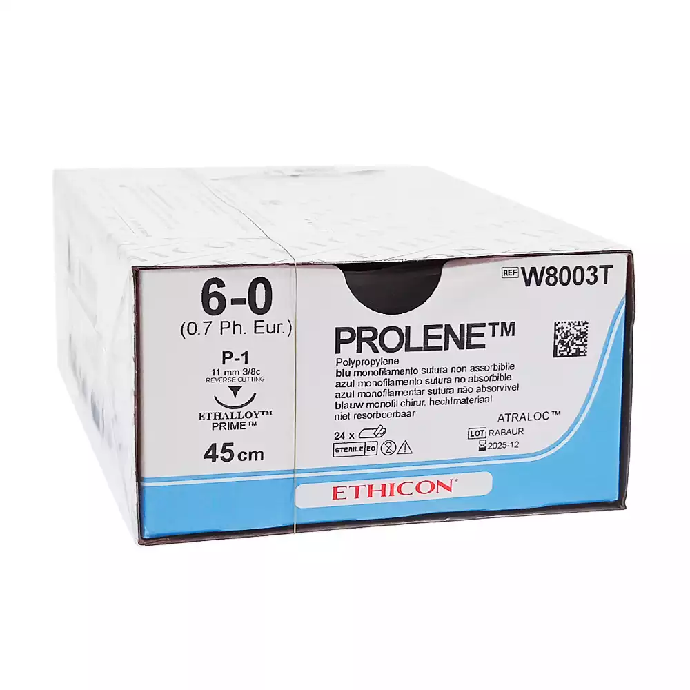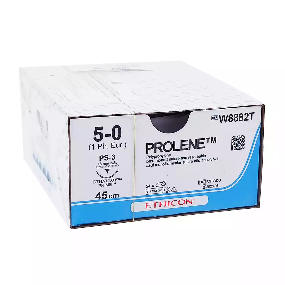 Пролен 5/0 М1, длина 45см, игла обратно-режущая PS-3,3/8 окружности 16мм, синий, упаковка 24шт, W8882T, ETHICON