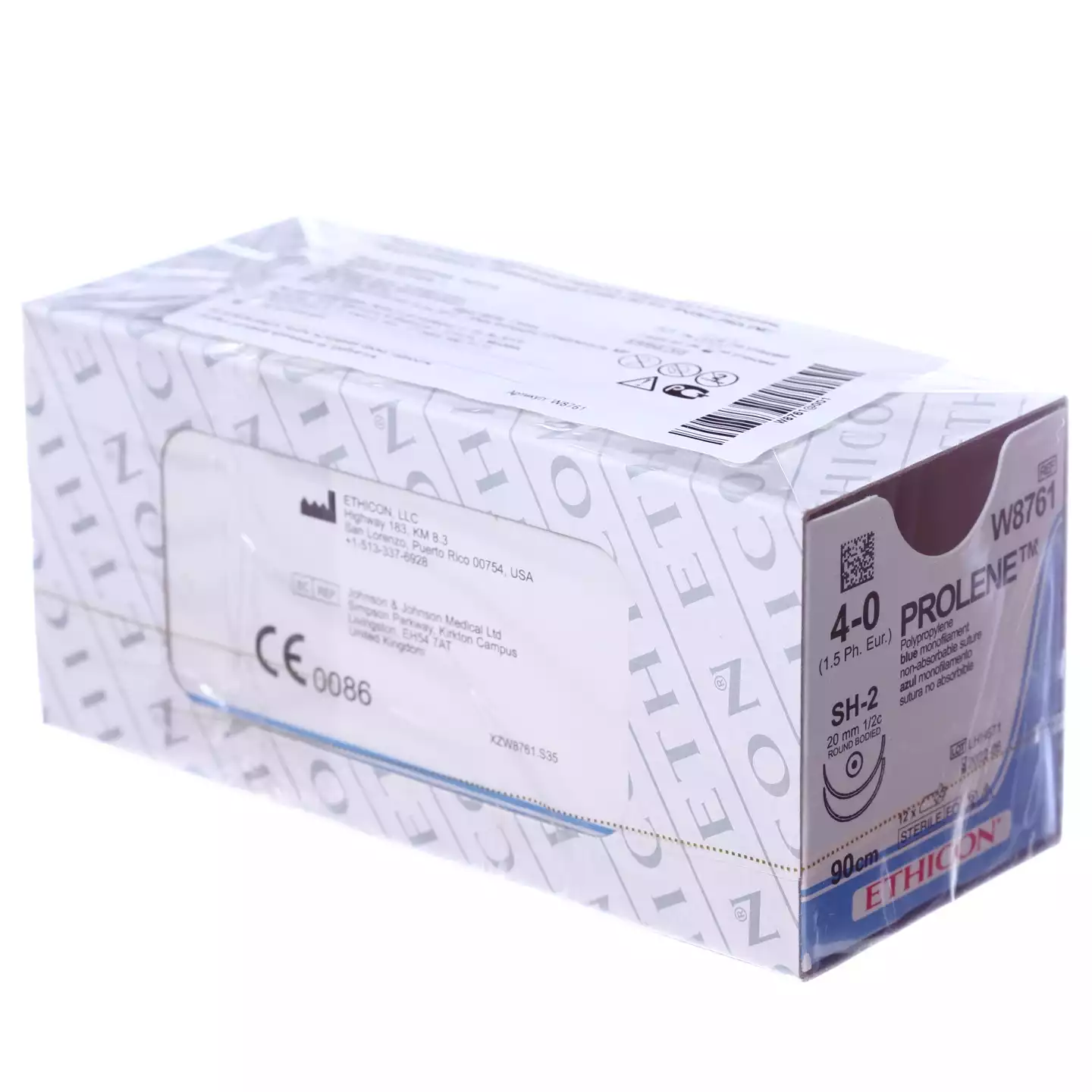 Пролен М1,5 (4/0), длина 90см, 2 иглы колющие SH-2-2 1/2 окружности 20 мм, синий, упаковка 12шт, W8761, ETHICON