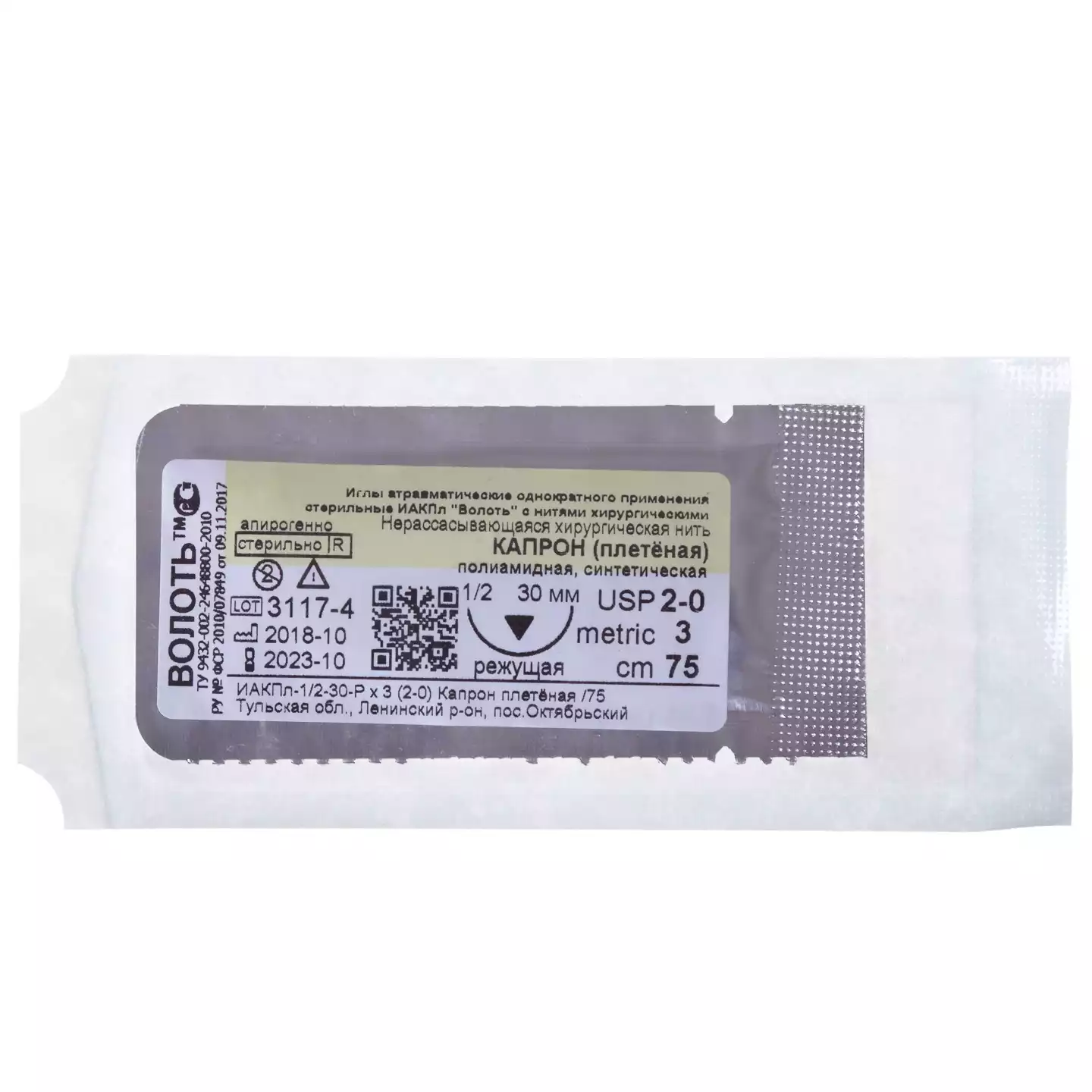 Капрон плетеный ИАКПл-Н х2 (3/0), без иглы, длина 150см, Волоть (РОССИЯ)
