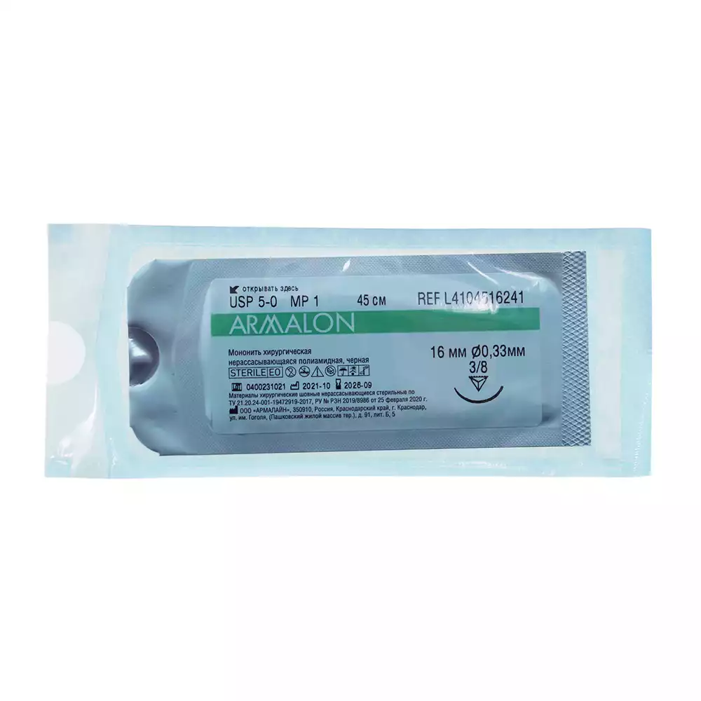 Полиамид NA 5/0 mono K игла 16мм 1/25, длина 75см, упаковка 12 нитей, МЗКРС шовные материалы (РОССИЯ)