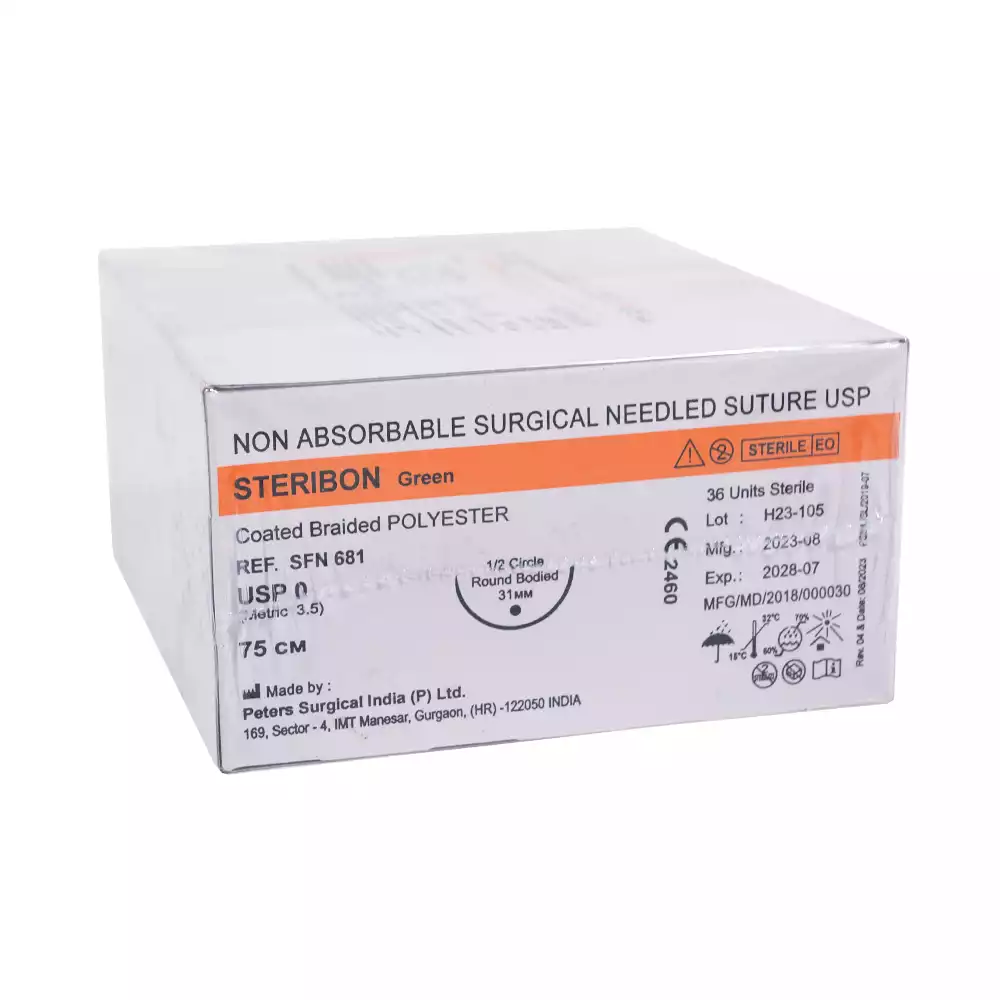 Стерибон 0 (3,5), длина нити 75см, игла 1/2 колющая 31мм, упаковка 36шт, SFN681, Peters Surgical (ИНДИЯ)