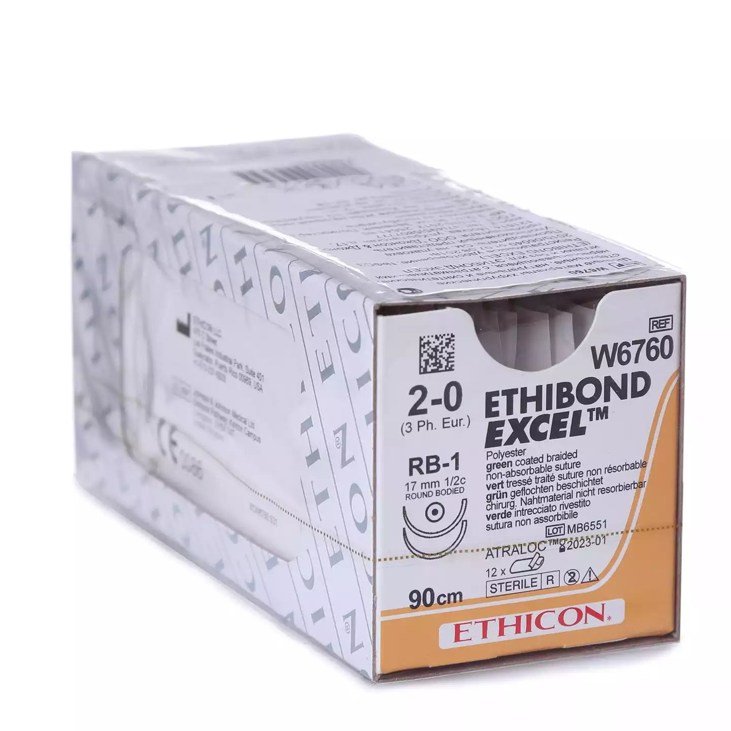 Викрил 4/0, длина 75см, игла колющая RB-1 Plus 1/2 окружности 17 мм, фиолетовый, упаковка 12шт, W9106, ETHICON