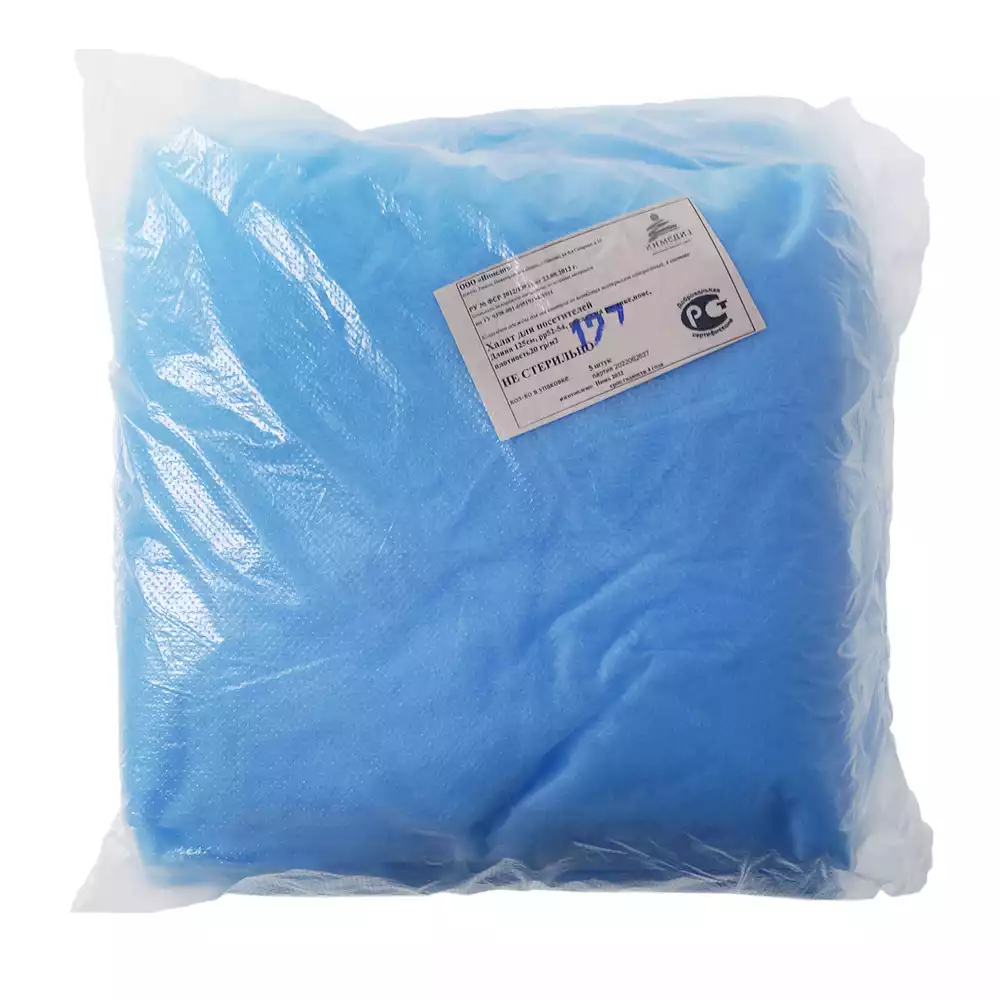 Халат (кимоно) с запахом, длина 125см, рукав длинный на резинке, пояс, материал смс 20г/м2, размер 52-54, нестерильный.