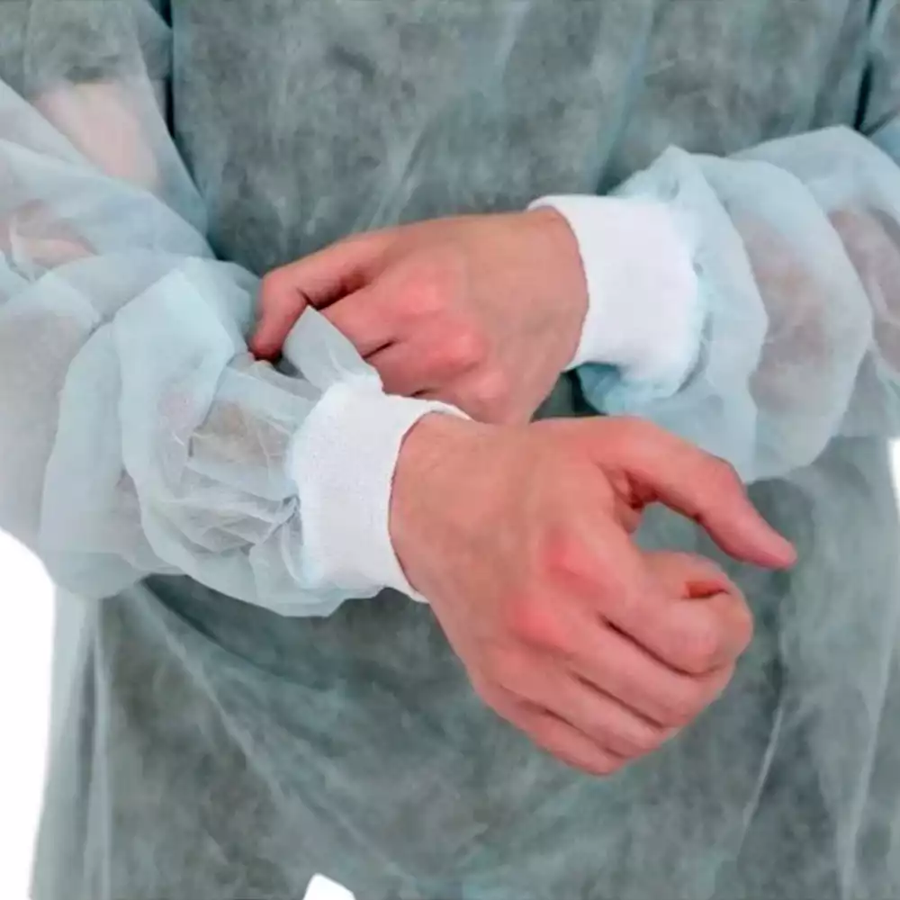 Халат одноразовый изготовлен из гипоаллергенного, нетканого полипропилена – СМС.